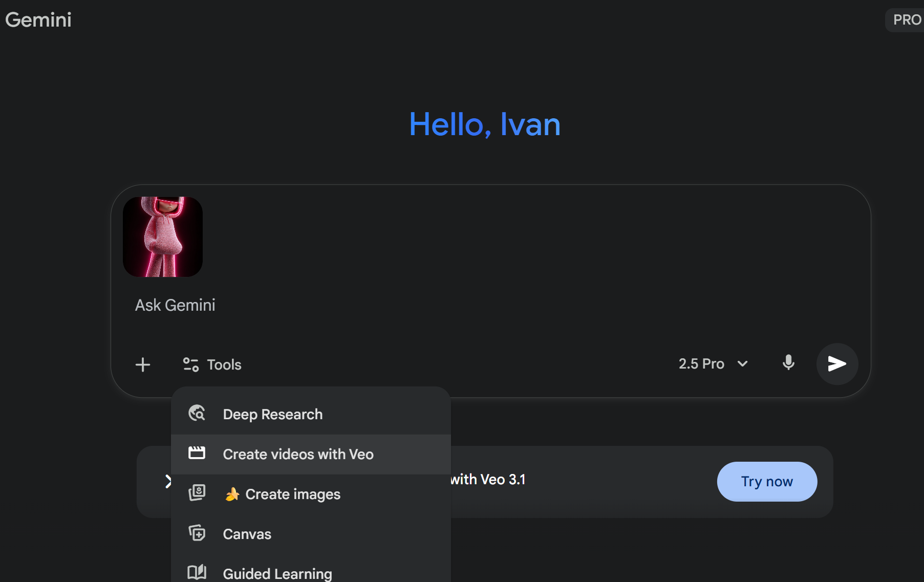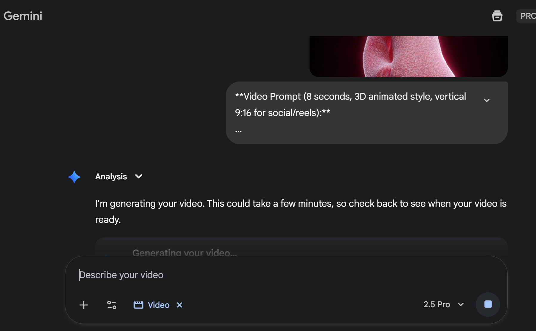 到Google Gemini upload 生成的圖片,輸入prompt 及 Create video with Veo 3