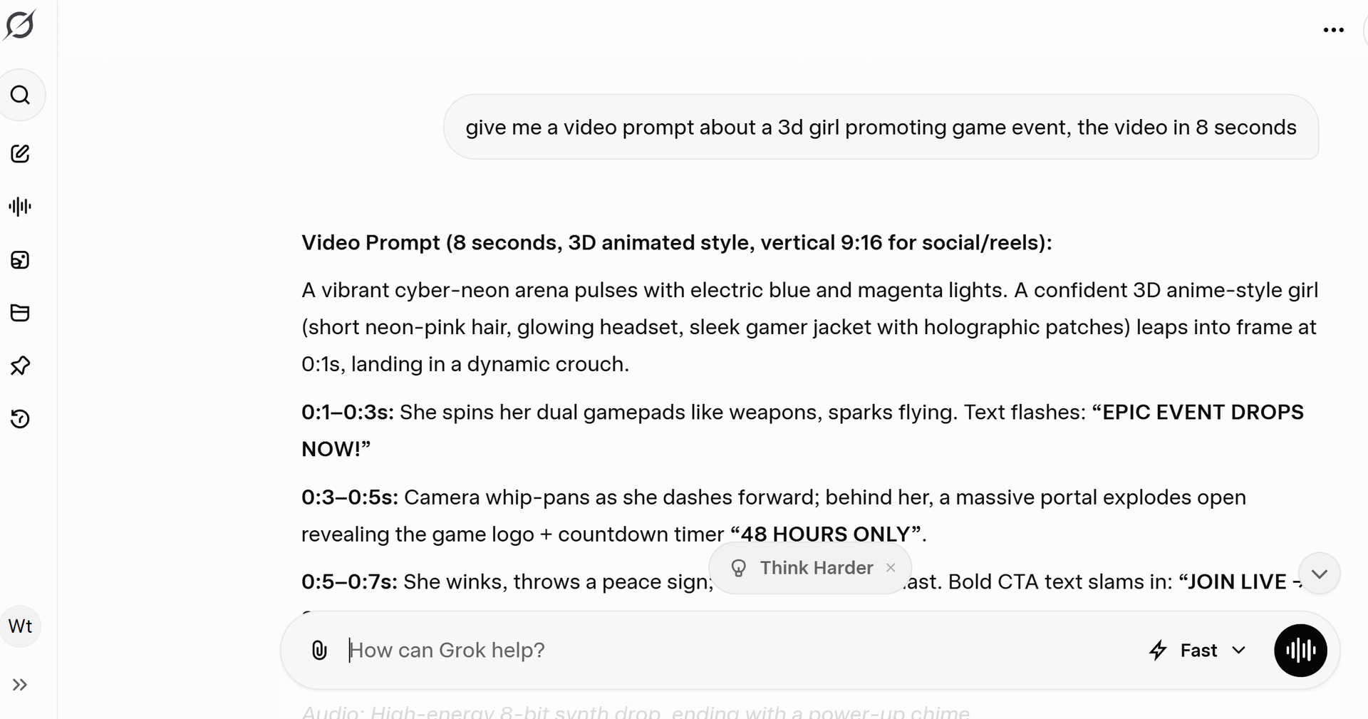 可以用grok/ Chatgpt 生成有關的video prompt 及修改你想要的對話及埸境
