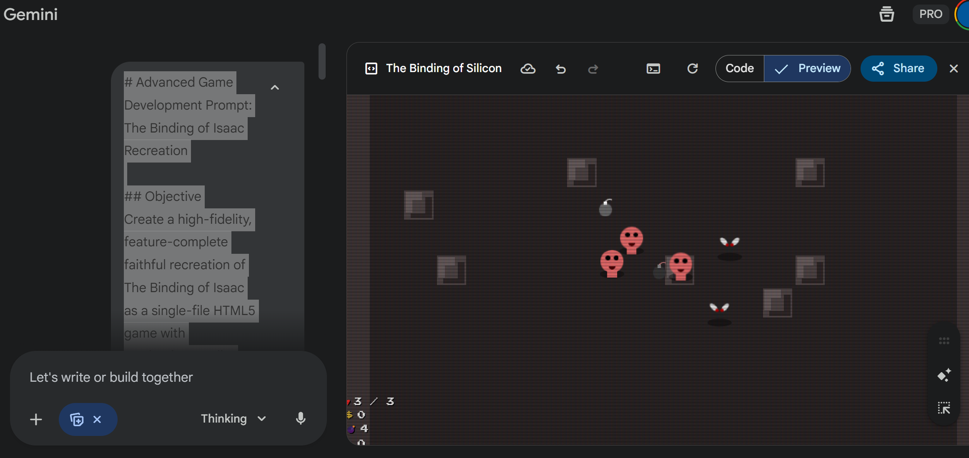 最後,我們來挑戰極限。Gemini 3.0 懶人包如果沒有提到寫遊戲,就不算完整。