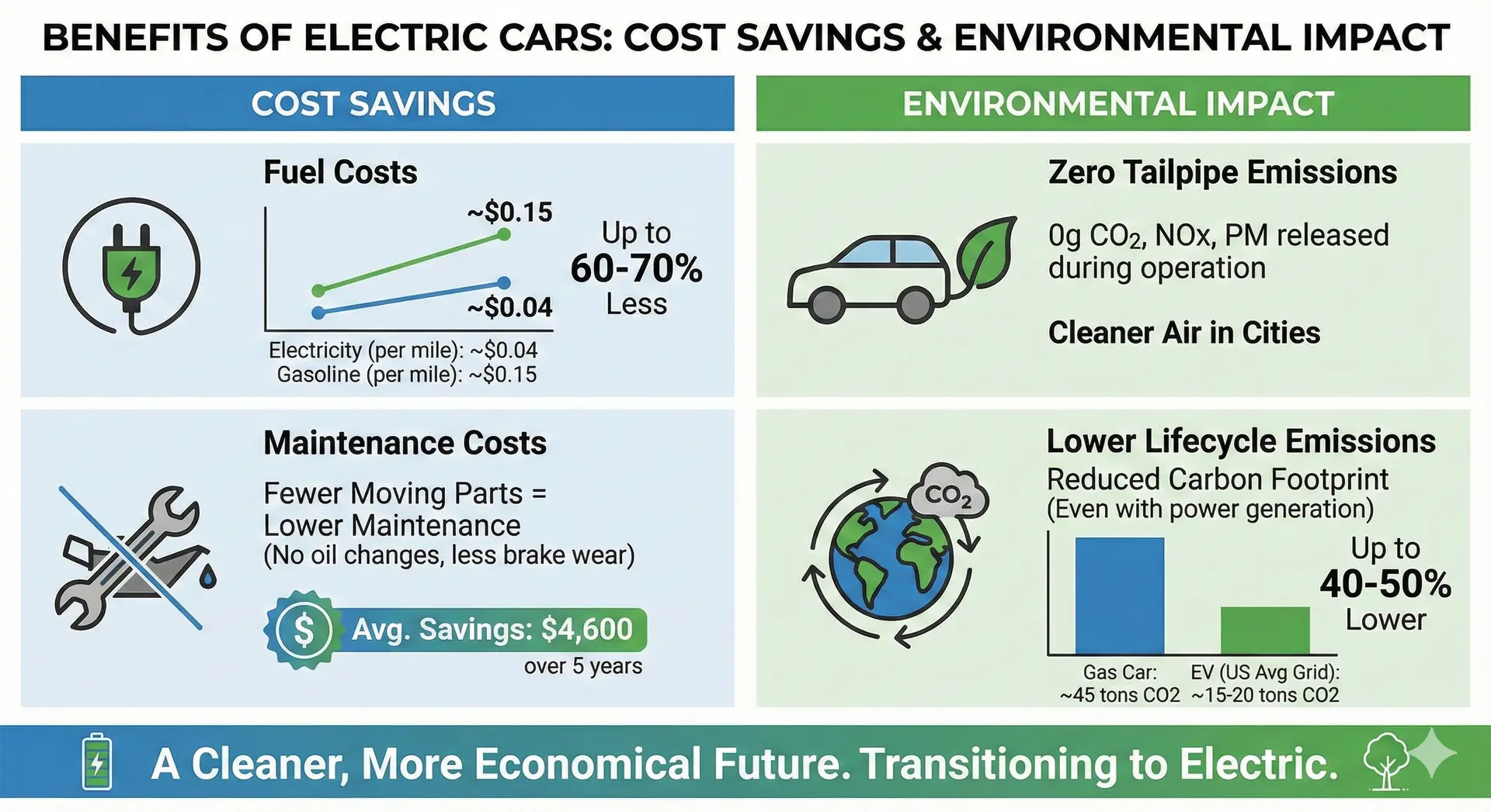 - Prompt 靈感: Create a clean infographic summarizing the benefits of electric cars, showing cost savings and environmental impact, using accurate data, blue and green color scheme.