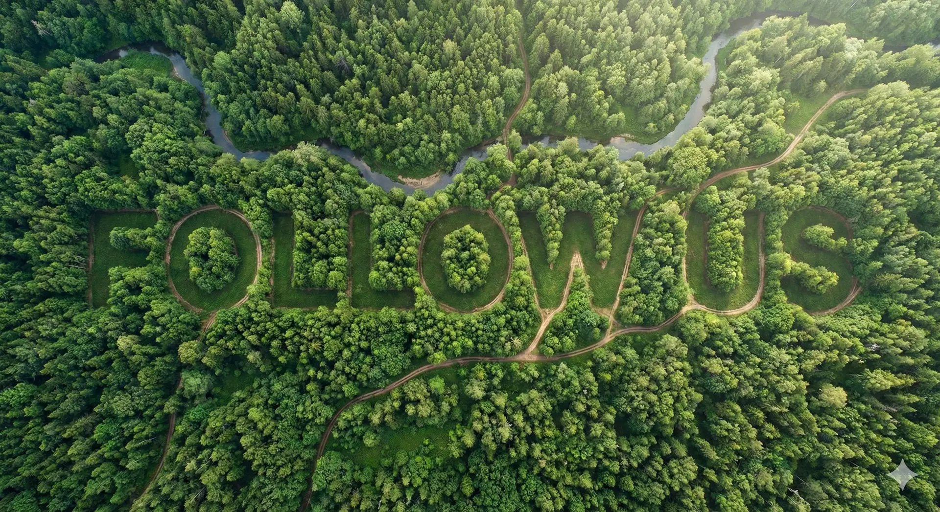 - Prompt 靈感: Aerial view of a dense lush forest, the trees and pathways subtly form the word "NATURE", photorealistic, hidden text illusion.